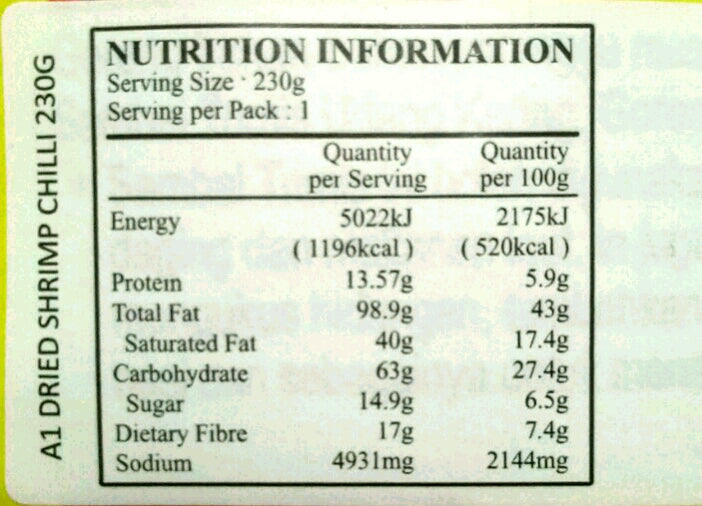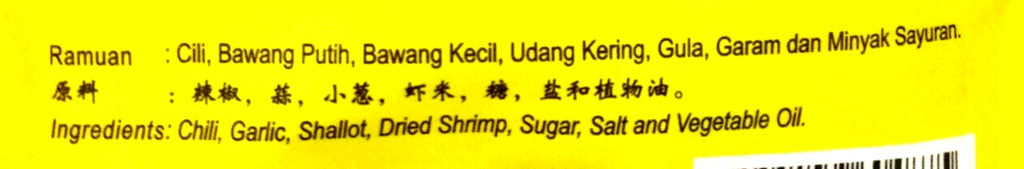 Dried Shrimp Chilli Paste ( Sambal Tumis Udang Kering ) 230g 特制虾米辣椒酱